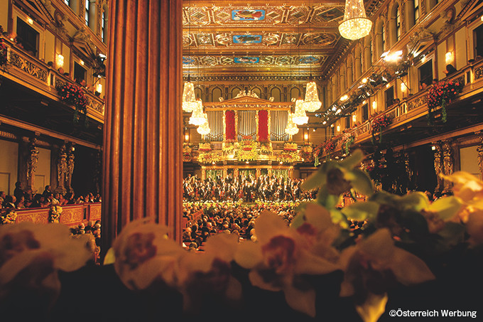 ギリシャ神殿の建築様式を随所に取り入れたウィーン楽友協会の建物は、4つの伝統的なコンサートホールがあります。中でも”黄金のホール”は、世界最高峰と称される楽団、ウィーン・フィルハーモニー管弦楽団の拠点で、このホールでは世界的に有名なニューイヤーコンサートが毎年元旦に執り行われるので、テレビ中継などで目にしたことのある方も多いのではないでしょうか。日曜を除くほぼ毎日、ドイツ語と英語による45分の館内ガイドツアーが実施されています。