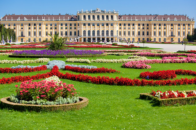 ハプスブルク家の離宮として”ベルサイユ宮殿に匹敵する宮殿を”という命によって設計され、”マリア・テレジア・イエロー”と呼ばれる華やかな黄色の外観とウィーン風ロココ様式が優雅な宮殿です。1,441の部屋のうち、45の部屋が一般公開されていますが、いずれも最高級の調度品とロココ様式の美しい装飾で彩られ豪華絢爛そのもの。宮殿の前に広がる広大な庭園も美しく、綺麗に剪定された街路樹や細かな彫刻が施された噴水など、散策するだけでも楽しめます。