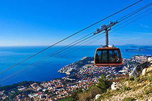 丘の上から旧市街とその前に広がるアドリア海を一望できる絶好のビュースポット。ドゥブロヴニクの旧市街を真上から写した写真には、この山から撮影されたものがほとんどだと言われているほど、景色の良さはお墨付き。山頂へはロープウェイで登る事ができ、山頂の駅にはカフェ、レストランもあるので、素晴らしい景色を楽しみながらのんびりと休憩できます。ゆっくりと景色を楽しみながら登りたい方は、市街地から徒歩での登山もおすすめです。
