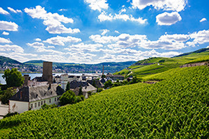 川沿いの街のひとつリューデスハイムには多くのワイナリーが集まり、極上の白ワインが味わえます。街は中世の雰囲気を残す家々が建ち並び、どこかかわいらしい雰囲気。ワイン酒場が集まる「つぐみ横丁」と呼ばれる通りはいつも多くの人で賑わいます。ワインを飲みながらドイツ料理に舌鼓を打ちましょう。またリューデスハイムには、ライン川クルーズの船着場もあり、ライン川クルーズのハイライトであるリューデスハイム~ザンクト・ゴアール間のクルーズにも便利です。