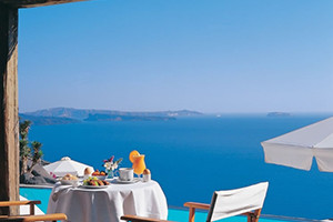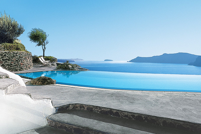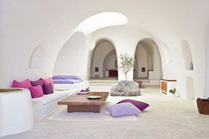 絶景が眺められるサントリーニ島では、ホテルでのんびりと過ごす事こそが最大の楽しみ。サントリーニの住居は強烈な太陽の日差しを和らげるため、洞窟のような形、白い壁というスタイルになりました。海が一望で、プール・テラス付きというのが一般的ですが、その中でも海と一体化するようなインフィニティプールや、洞窟の中のような雰囲気のプール、海に突き出る崖の上に作られたレストランのテラス席など、ホテルごとの特徴が面白く、ホテル選びも楽しみの一つと言えます。