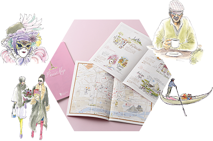 イタリアかフランスにご旅行されるお二人へ、アニバーサリートラベルオリジナルのイラストMAPをプレゼント!見所やおすすめのお店など、やわらかなイラストでご案内しております。