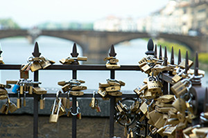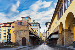 フィレンツェの街を流れるアルノ川にかかるフィレンツェ最古の橋。過去に何度か架け替えがされたものの、現在の橋は14世紀に架けられたものです。長い年月のうちに増築を繰り返し、現在では橋の上にたくさんの店が並んでいます。橋から建物がはみ出すように不規則に並んでいる様はとてもユニークで、フィレンツェの人気写真スポットにもなっています。夜には綺麗にライトアップされ、両岸の街並みや川に映る橋の灯りなどが美しく、昼間とはまた違う雰囲気が楽しめます。