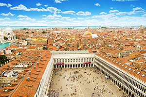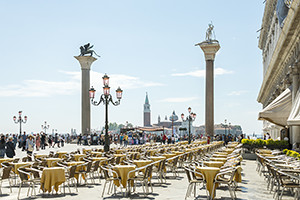 ベネチアの中心地。かつてナポレオンが「世界で一番美しい広場」と称したとも言われており、その美しさはヨーロッパでも随一。ほとんどの観光スポットがこのサンマルコ広場から徒歩圏内となっており、初めてベネチアを訪れた方はまずここを目指すと分かりやすいでしょう。広場には、聖人「聖マルコ」の遺体が納められている大聖堂「サン・マルコ寺院」や、高さ98mの鐘楼があり、いずれもベネチアの人気観光スポットとなっています。