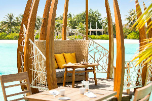 モルディブ滞在の起点であるマーレからもアクセスが容易な、南マーレ環礁のMaadhoo島に、2016年7月にオープンしたリゾート。このリゾートを象徴するのが、水深6mに位置するシーフード・レストランで、ぐるりと取り囲む水中世界はインパクト抜群です。もう一つの特徴が、充実の「オールインクルーシブ・プラン」。食事やドリンク以外にもスパ利用や各種アクティビティが揃い、滞在中に欲しい全てがプランに含まれているので、余計なことに気をまわさずゆったりと滞在を楽しむことができます。