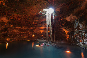 ユカタン半島には「セノーテ」と呼ばれる天然の泉が無数に存在していて、その神秘的な姿が世界的に注目を浴びています。チチェン・イツァーのすぐそばにある「セノーテ・イキルは、無数のツルが水面まで伸びている様が特徴的で、上から降りそそぐ光が透明度の高い水面に反射して、とても神秘的な姿を見せてくれます。チチェン・イツァー観光とセットで訪れるのがおすすめです。