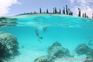 島の北東部、南洋杉の森を抜けると現れる、白砂に囲まれた天然のプール。潮位によって流れ込んだ海水がせき止められでできる自然のプールは、浅瀬にはうっすらと水が張る程度ですが、少し奥へ行くと深さも増し、足元が見えるほどの透明な水の中には色とりどりのコーラルフィッシュがたくさん。絶好のシュノーケリングポイントです。
