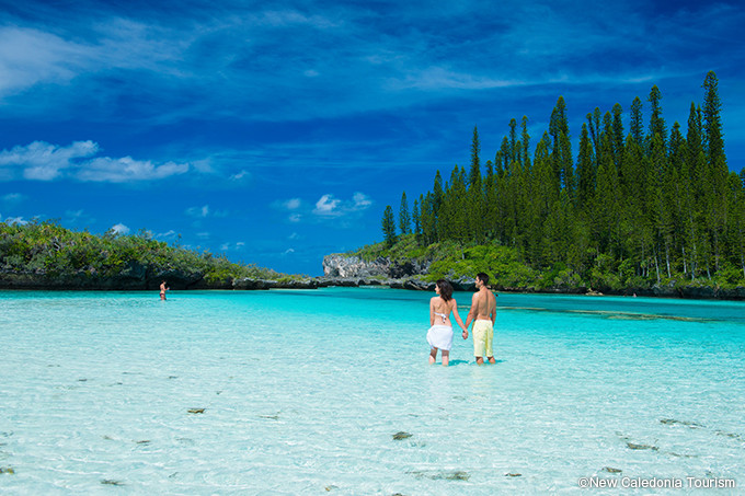 小説「天国にいちばん近い島」の舞台になったウベア島は、20㎞もの白砂のロングビーチを持ち、真っ白な砂洲と、爽快な青い海のグラデーションが織り成すコントラストが魅力の島。ニューカレドニア随一と言われる砂のきめ細かさを誇り、島の西側5㎞にもわたって広がる「ムリビーチ」や、たくさんの魚が泳ぐ水路にかかる「ムリの橋」、朱色の屋根と緑の並木道が美しい「ムリの教会」など、どこを見ても素朴で美しい景色が広がっています。