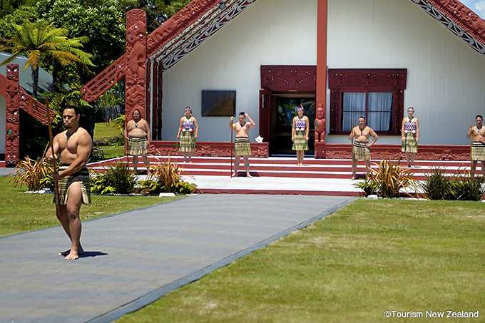 ロトルアは、マオリの伝統文化が色濃く残る土地。ロトルアが観光地として発展した最大の理由は、マオリ文化の中に深く根付く、訪問者をもてなす精神「マナアキタンガ」でしょう。ホテルや専用施設で催されるマオリディナーショーでは、地熱を利用したハンギ料理、美しい歌やダンスなど、マオリの伝統文化に触れることができます。