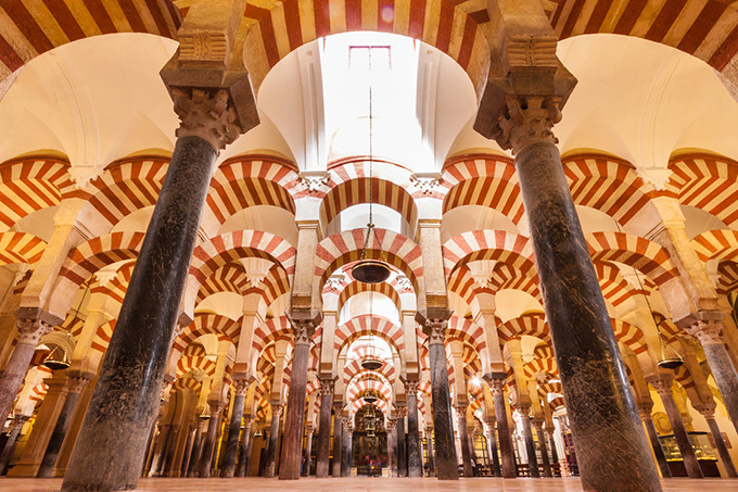 一番の見所は「メスキータ」と呼ばれる建物。キリスト教の大聖堂とも、イスラム教のモスクとも言える建築物となっています。約850本もの柱と、赤と白の縞模様のアーチが続く「マヨール礼拝堂」は、”円柱の森”とも呼ばれ、見た目にも華やかでフォトジェニックです。他にも、「アルカサル」は必見。水をふんだんに使った庭園は見事で、赤茶けた古いレンガの建物とみずみずしい緑とのコントラストがとても美しく、コルドバのマストスポットのひとつとなっています。