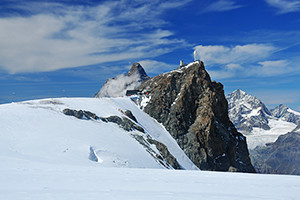 ツェルマットの代表的な展望台で、ヨーロッパで最も高い所にある展望台としても有名です。別名”マッターホルン・グレイシャー・パラダイス”とも言われており、すぐそばにはマッターホルンがそびえ、ブライトホルンやフランスのモンブランなど名峰が一同に介する豪華な眺め。ロープウェーで上がるので、途中の景色の移り変わりも楽しめます。展望台のそばには”氷の宮殿”というアルプス最高地点に作られた氷河洞窟もあります。