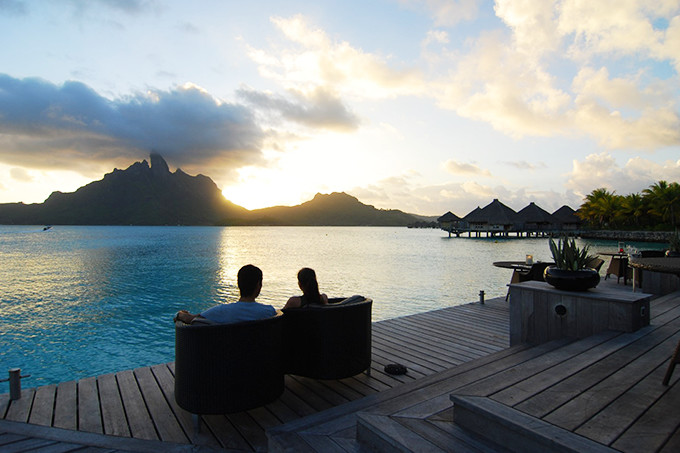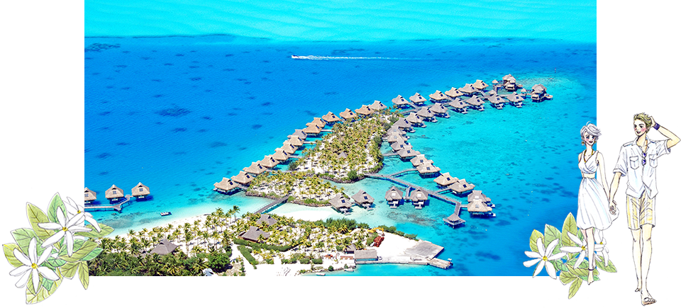 無限のグラデーションとも言えるブルーラグーンと、緑豊かな山々とのコントラストが作り出す美しい風景。その出逢いこそがタヒチ・バカンスの究極の目的です。自然が作り上げた芸術的な景色を最大限に堪能させてくれる様々な”おもてなし”もタヒチならでは。昼間の海のきらめきの代わりに、夜には遮りもののない満天の星空が広がり、南十字星がお二人を祝福してくれます。ポリネシアならではの穏やかな雰囲気と、タヒチアンの陽気な笑顔も過ごしやすさの秘密かもしれません。フランスの香り漂う洗練された雰囲気もあり、体験するものすべてがロマンティックなタヒチ。まさにハネムーンで愛する人と一緒に行くのがぴったりの場所です。