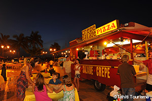 パペーテ港のバイエテ広場に毎晩18時になるとル・ロットが出現します。ル・ロットとは車を改造し荷台部分が調理スペースになった屋台のことで、広場には毎晩20~30台ほどのトラックが並びます。ジャンルはステーキ、ピザ、タヒチアンなど多岐に渡ります。特にチャーハンなどの中華料理は、フレンチのコースに少々飽きてしまった際には大変有難い存在です。アルコールは禁止ですのでその点だけ注意が必要です。